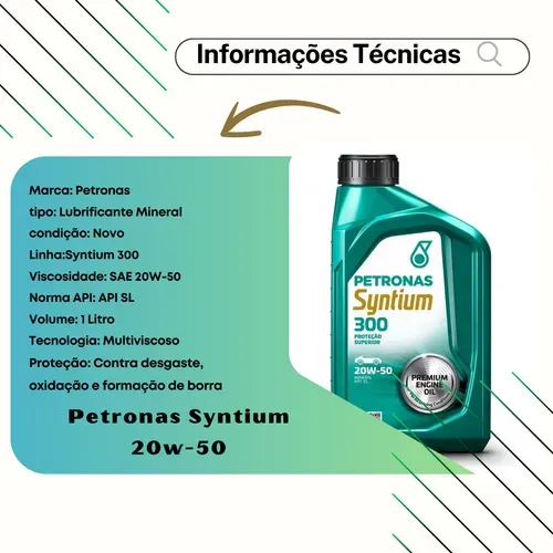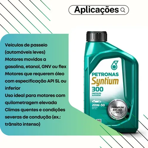 Petronas Syntium 20W-50 oferece proteção superior e desempenho excepcional para o seu motor. Formulado com tecnologia avançada, este óleo proporciona uma lubrificação eficiente em todas as condições de condução, aumentando a vida útil do motor e melhorando a eficiência de combustível.