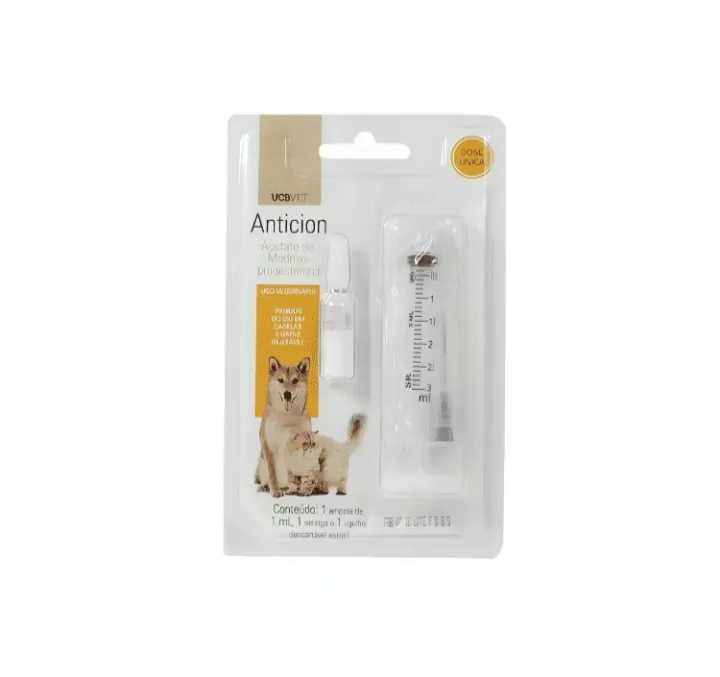 Anticion é indicado como inibidor do estro em cadelas e gatas em condições em que a gestação pode acarretar risco ao pet.