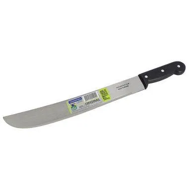 Facão Tramontina Original "14" e "18" polegadas, Lâmina produzida em aço carbono 10 com fio liso, devido a um tratamento térmico o fio da lâmina tem maior durabilidade, possui também um acabamento lixado com um revestimento em verniz, que lhe confere também uma maior resistência . Cabo de polipropileno com mais resistência e durabilidade fixado por pregos de alumínio.